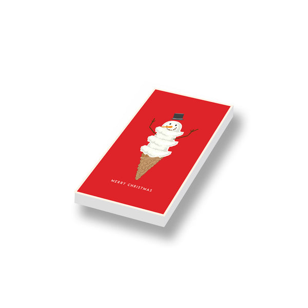 Kerstkaart Sneeuwpop ijsje - geprint op een nieuwe 1x2 witte LEGO® tegel