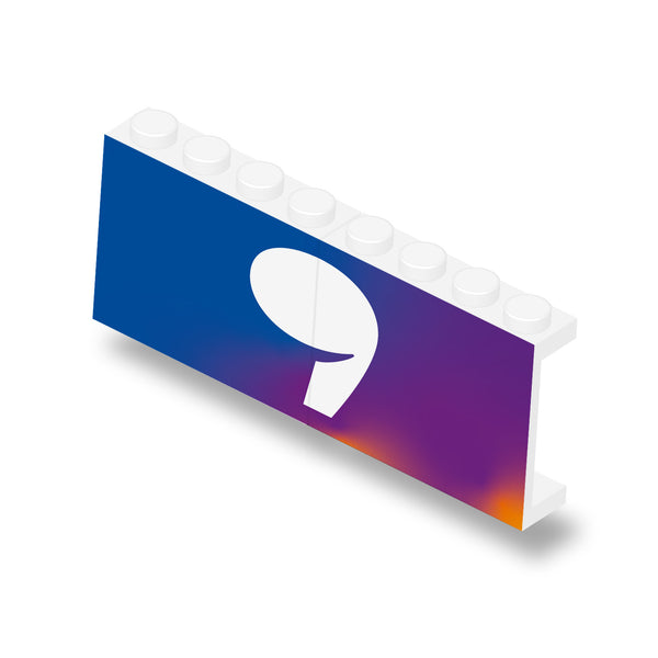 Geprint op 2 nieuwe witte 1x4x3 LEGO® panels.