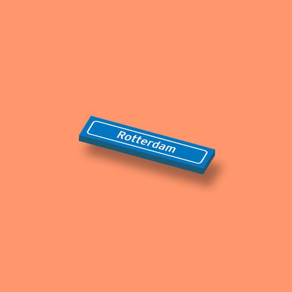 Ortsname 1x4 mit weißem Rand und weißen Buchstaben auf einer blauen Originalfliese gedruckt.