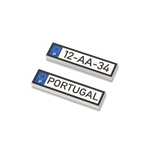 Zwei portugiesische Nummernschilder, gedruckt auf originalen weißen 1x4-Kacheln.
