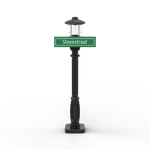 Enthält 1 Straßenschild, das auf eine 1x4-Kachel gedruckt ist.