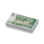 Play money, Dutch guilders: 5 guilders printed on a 1x2 new white LEGO® tile. LEGO® part number: 3069b