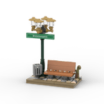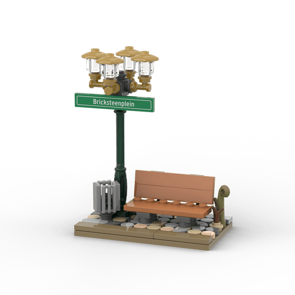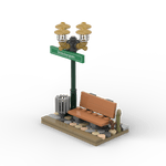 Grüner Laternenpfahl mit Bank - Grünes Schild Grüner Laternenpfahl mit Bank - Grünes Schild