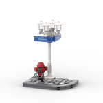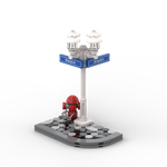 Laternenpfahl, weiße Ecke mit Hydranten - blaue Schilder Laternenpfahl, weiße Ecke mit Hydranten - blaue Schilder