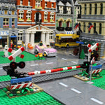 Deze bundel bevat twee Nederlandse spoorwegovergangen (links & rechts gespiegeld) met rood-witte slagbomen, knipperlichten en kruisborden. Perfect langs je weg en spoor in jouw LEGO®-stad.