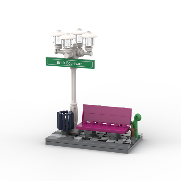 Inclusief 1 straatnaambordje geprint op een originele groene 1x6 tegel.