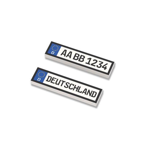 Twee Duitse Kentekens geprint op originele witte 1x4 tegels.