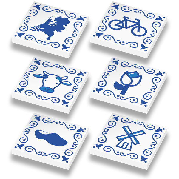 Motif Delft Blue Flower Holland - imprimé sur 6 nouvelles tuiles LEGO® 1x1.