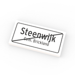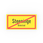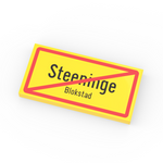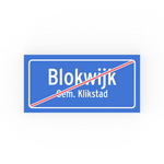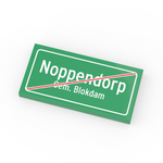 Nom du lieu 2x4 avec bordure blanche et lettres blanches imprimées sur un carreau bleu avec une bande diagonale rouge sur le texte à utiliser comme fin des zones bâties.