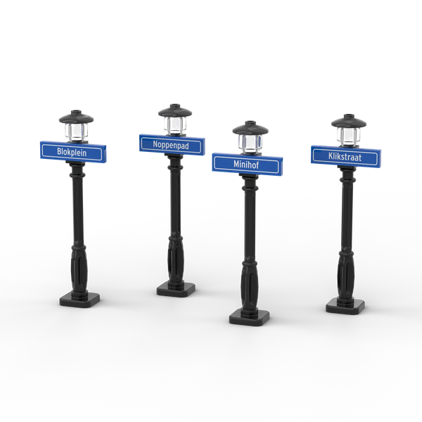 4 toponymes 1x4 livrés sur 4 lampadaires noirs microbuild