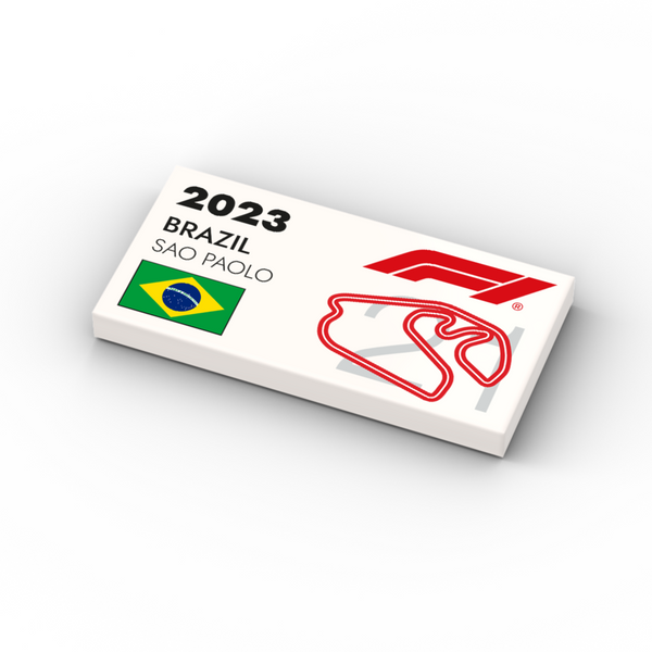 Formule 1 circuit van Brazilië - geprint op een nieuwe witte 2x4 LEGO® tegel.